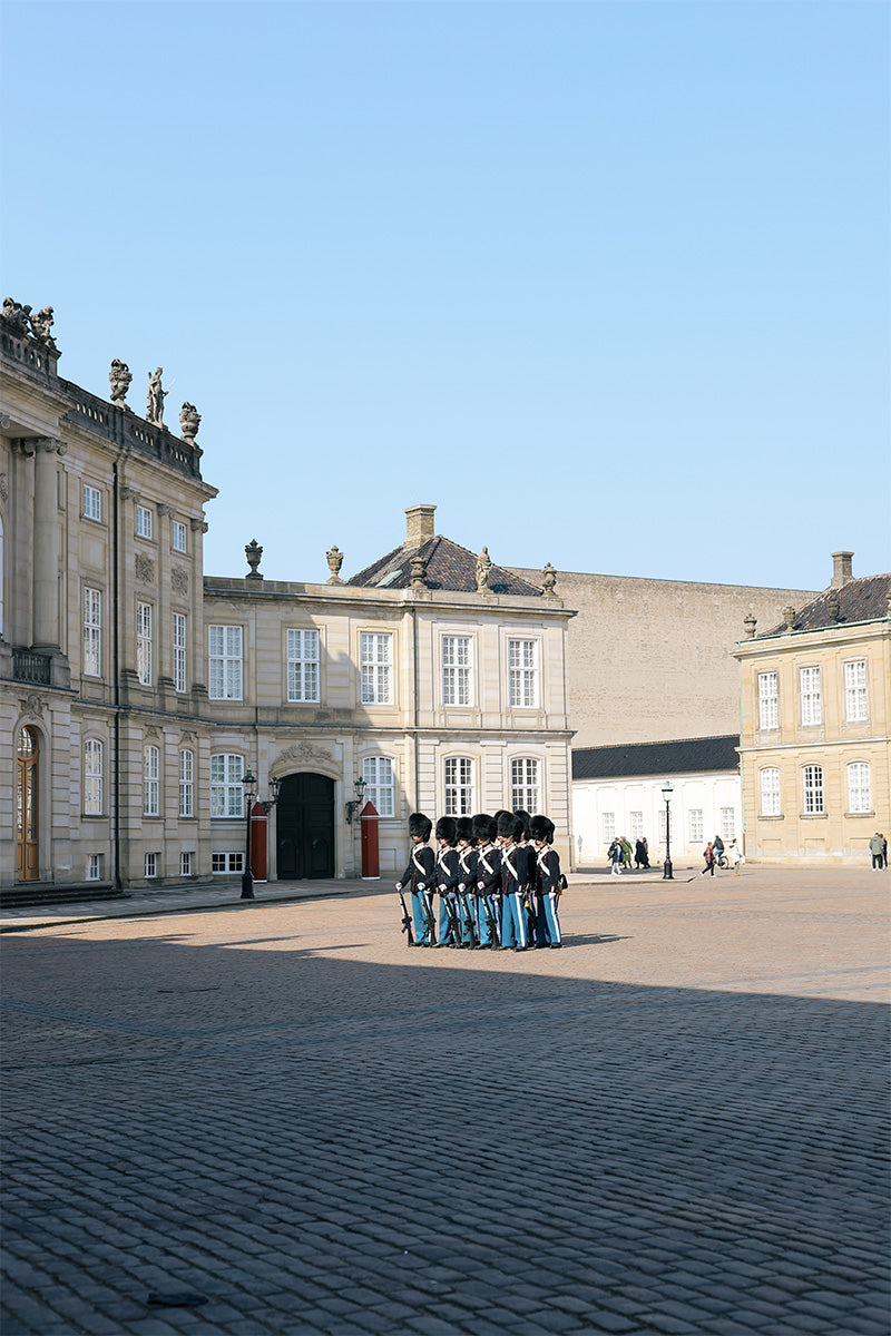 Når Kongen er til stede, ledsages vagten af Det Kongelige Livgardes musikband og vil fylde Københavns hjerte med musik.