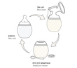SILICONE, THE GUARANTEE OF SECURITYÉlhée’s baby bottle and teat are created in an innovative, medical-grade quality silicone, which are non-allergenic, guaranteed without bisphenol A and S, or any other environmental substances harmful to children's health, including lead, PVC, phthalates, nitrosamines and other heavy metals. Élhée’s unique closure system precludes any risk of the milk co- ming into contact with any materials other than those of the bottle and silicone teat.