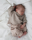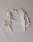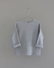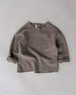 The baby-sized version of our Billie Blouse—oversized, easy, and made in Italy from the same soft, brushed cotton blend as the kid style. Raw edges finish the neckline, cuffs, and hem; a single back-neck snap lets the top open wide for quick changes. Sleeves roll now and unroll later, so the fit lasts through growth spurts. Light indoors, simple to layer on cooler days.