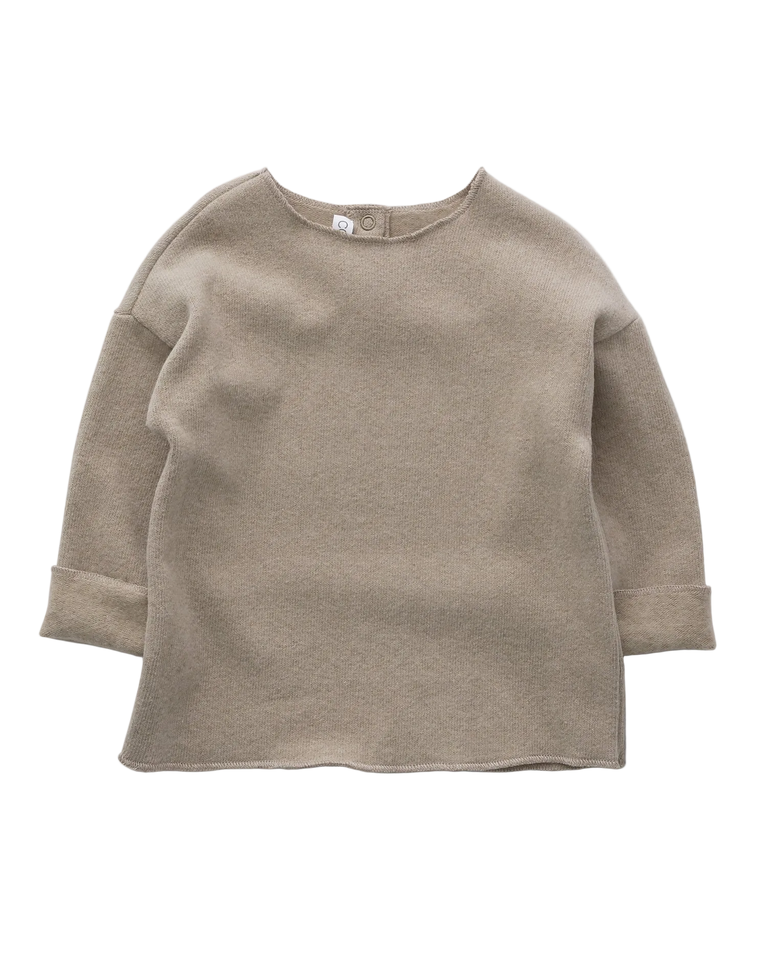 The baby-sized version of our Billie Blouse—oversized, easy, and made in Italy from the same soft, brushed cotton blend as the kid style. Raw edges finish the neckline, cuffs, and hem; a single back-neck snap lets the top open wide for quick changes. Sleeves roll now and unroll later, so the fit lasts through growth spurts. Light indoors, simple to layer on cooler days.
