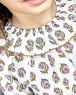 The Bonton Daria dress in Creme poplin is printed with small field flowers. A ruffled collar frames the neck, and puff sleeves leave room to move. The 100 % cotton fabric stays light on skin for play in warm weather and layers over tights when days cool. Chosen by CO LABEL for its soft structure and cross-season wear.