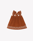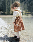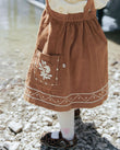 The Bonton Madeleine dress in Nutcracker cotton mini-velvet features hand-embroidered ruffled straps. Soft corduroy falls in a flared line that moves freely during play, and the 100 % cotton keeps skin comfortable in shifting weather. Chosen by CO LABEL for its elegance and playful silhouette.