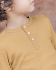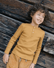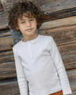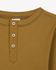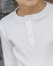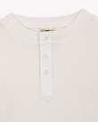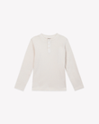 The Bonton Mouette long-sleeve T-shirt in ecru is rib-knitted from 100 % cotton. Part of the Winter Tales story, it has a straight fit, a clean three-snap placket, and fine ribs that warm without weight. The fabric moves easily under quilted coats or velvet trousers, ready for quiet walks through imagined snow. Curated by CO LABEL for refined simplicity and wear across seasons.