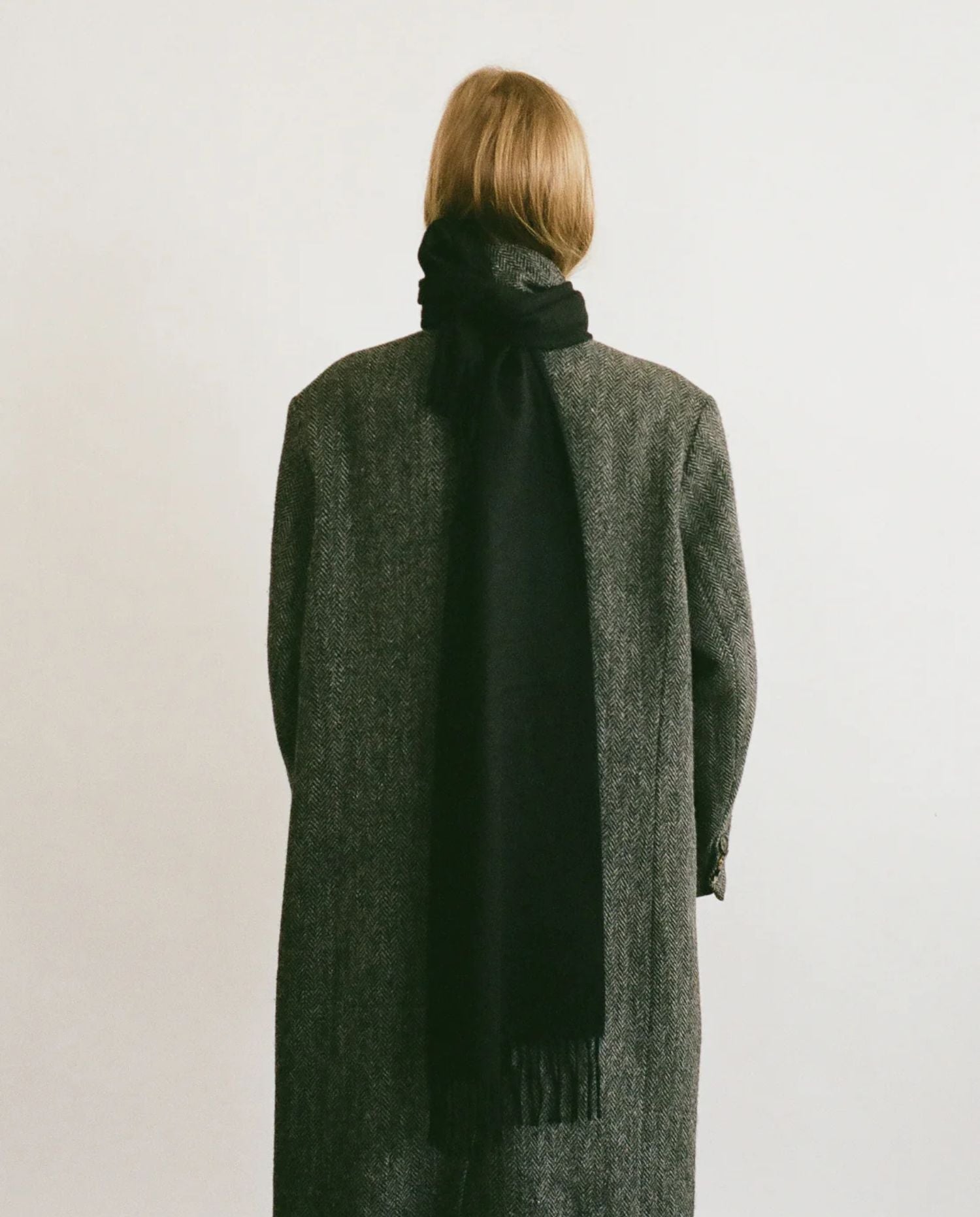 Crafted from 100% premium cashmere, the Cashmere Woven Scarf in Black is luxuriously soft, lightweight, and gentle against the skin. Its smooth, slightly shiny finish ensures lasting comfort and durability season after season. Fringed at the ends, this scarf pairs beautifully with any outfit, adding a subtle, sophisticated accent. Its versatile shape allows for a range of styling options, whether draped effortlessly over the shoulders, wrapped snugly around the neck, or layered with outerwear for added warmth.