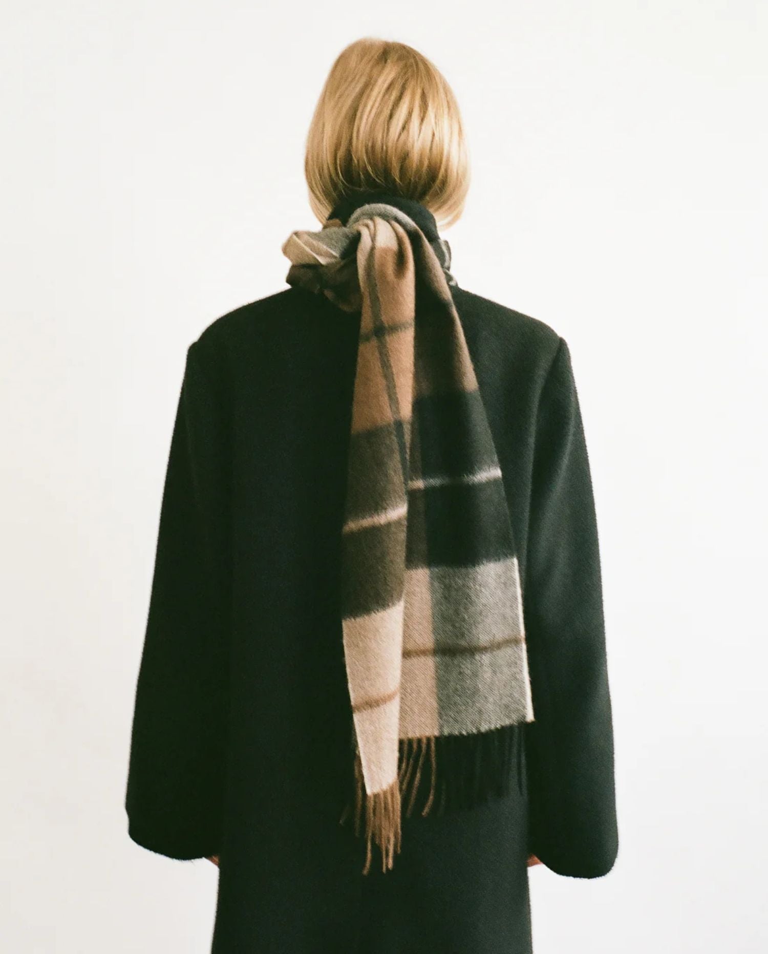 Crafted from 100% premium cashmere, the Cashmere Woven Scarf in Checked Brown is luxuriously soft, lightweight, and gentle against the skin. Its smooth, slightly shiny finish ensures lasting comfort and durability season after season. Fringed at the ends, this scarf pairs beautifully with any outfit, adding a subtle, sophisticated accent. Its versatile shape allows for a range of styling options, whether draped effortlessly over the shoulders, wrapped snugly around the neck, or layered with outerwear for added warmth.