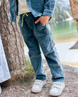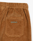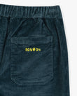 Fine-wale cotton corduroy. An elastic waistband adjusts with a bright drawcord, while a small contrast embroidery adds quiet colour. The straight leg moves easily from playground to city walk and pairs with tees or knits across seasons. Curated by CO LABEL for its soft texture and everyday ease.