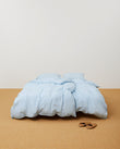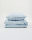 Aiayu Duvet Set 140×220 in Sky is GOTS-certified organic Chetna cotton poplin. Smooth, durable, and breathable for nightly use. The duvet cover fits a 140×220 cm duvet with a clean zip closure; the pillowcase has an envelope finish. Subtle printed Aiayu label detail. Packed in a reusable cotton bag. Chosen by CO LABEL for calm, everyday bedding that washes well and wears in softly. Composition: 100% organic cotton.