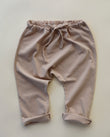 Bukserne har elastik og snøre i livet, så dit barn kan tage bukserne på og af uden at skulle binde dem op og i hvergang. Sørg dog for ikke at træk unødvendigt hårdt i snoren, da alt har sin begrænsning ☺️