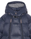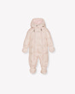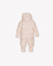 Ver de Terre Baby Down Wintersuit in technical fabric. Thick and fully insulated to keep little ones warm in freezing conditions. Soft down filling for high warmth and comfort. Detachable hood, storm cuffs, and fold-over closures at hands and feet in smaller sizes. Front zip with placket and snaps. Curated by CO LABEL for dependable protection through the coldest months.