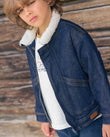 Cut from raw cotton denim, the Mao jacket features a pointed collar lined in soft fleece. A metal zip secures the front, while two angled pockets keep small finds close. Contrast stitching and a discreet Bonton badge complete the western note. Curated by CO LABEL for long-lasting quality and everyday wear.