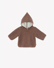 Knit in a soft wool-blend melange and fully lined with plush sherpa for extra warmth. The roomy hood frames the face; a single wood button closes the front placket, while a concealed back zip simplifies dressing. Straight sleeves and hem sit neatly over base layers without bulk. Selected by CO LABEL for cosy weight and easy winter layering.