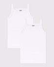 Soft combed cotton rib shapes this two-pack of girls’ singlets. The fabric feels smooth and breathable; slim bound straps keep the fit close without shifting. Finished with clean taping at neck and armholes, each piece layers under jumpers in cooler weather or works alone on warm days. Machine-washable and built to hold its shape over time.