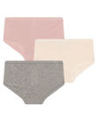 From Petit Bateau’s workshop in Troyes comes this three-pack of pointelle briefs in soft combed cotton. The fine knit feels breathable against the skin; the fitted cut sits snug at the waist with elasticated openings and a small bow detail. Colours—rose, cream, and heather grey—mix easily with everyday outfits. Layer under dresses or leggings for year-round comfort. Petit Bateau runs small; consider one size up for growing room.