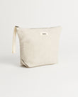 linen toiletry pouch with zip closure. Cotton-lined for light structure and easy wipe-clean care. Opens wide and stands on the sink; slips neatly into a tote or carry-on. Holds daily essentials—make-up, toothbrush, or cables—without bulk. Chosen by CO LABEL for the honest feel of European flax and a simple, durable shape that ages well.