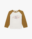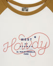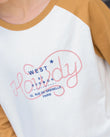 Soft 100 % cotton jersey printed with a small “Howdy” tipi graphic. Contrasting barn‑brown body and ecru sleeves frame the print; a clean crew neck finishes the line. Straight fit layers easily over denim or corduroy for a light western note. Curated by CO LABEL for everyday comfort and playful detail.