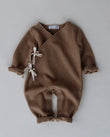 Constructed from our signature soft warm cotton, this kimono-style babysuit features a buttoned inner arm closure for quick diaper changes and an adjustable string closure at the front for a custom fit. With slightly extended sleeves and legs for added comfort and ease of folding, it’s designed to adapt seamlessly to your baby’s growing needs
