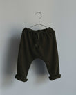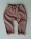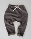 Relaxed trousers in soft warm-cotton knit, shaped with a dropped crotch to fit nappies with ease. An elastic waist and cotton drawstring adjust the fit, while rolled cuffs allow room to grow. Designed in Copenhagen for cozy days at home or bundled in the pram on cooler days.